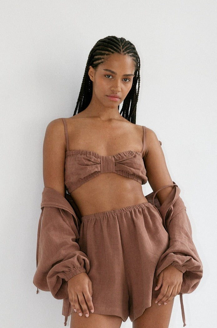 A summer time favourite, the bra top has adjustable tie straps and elasticized seams for a comfortable fit.
