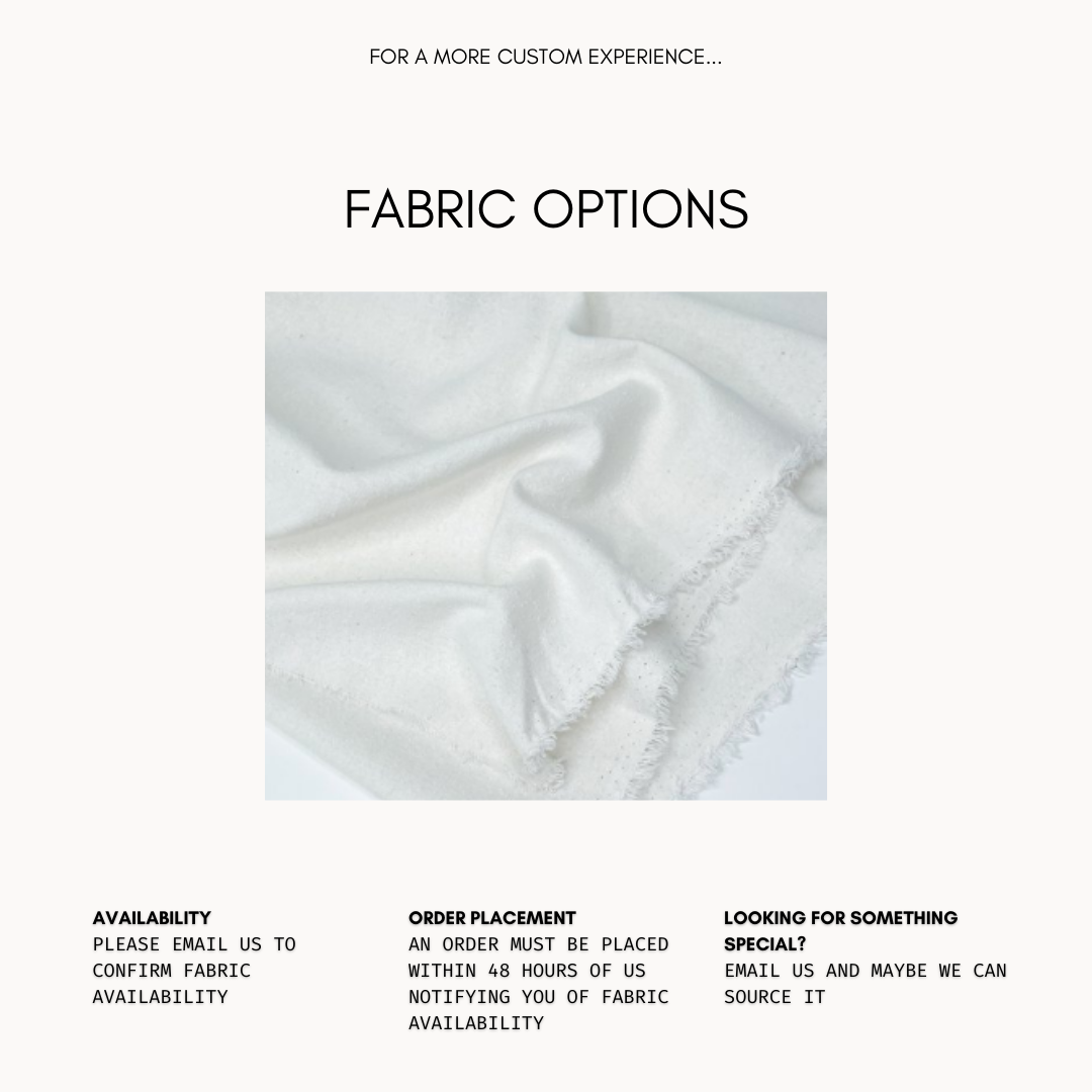 we offer custom lengths and sizes if you are outside of the size range, please email hello@bohemegoods.com to place a custom order.