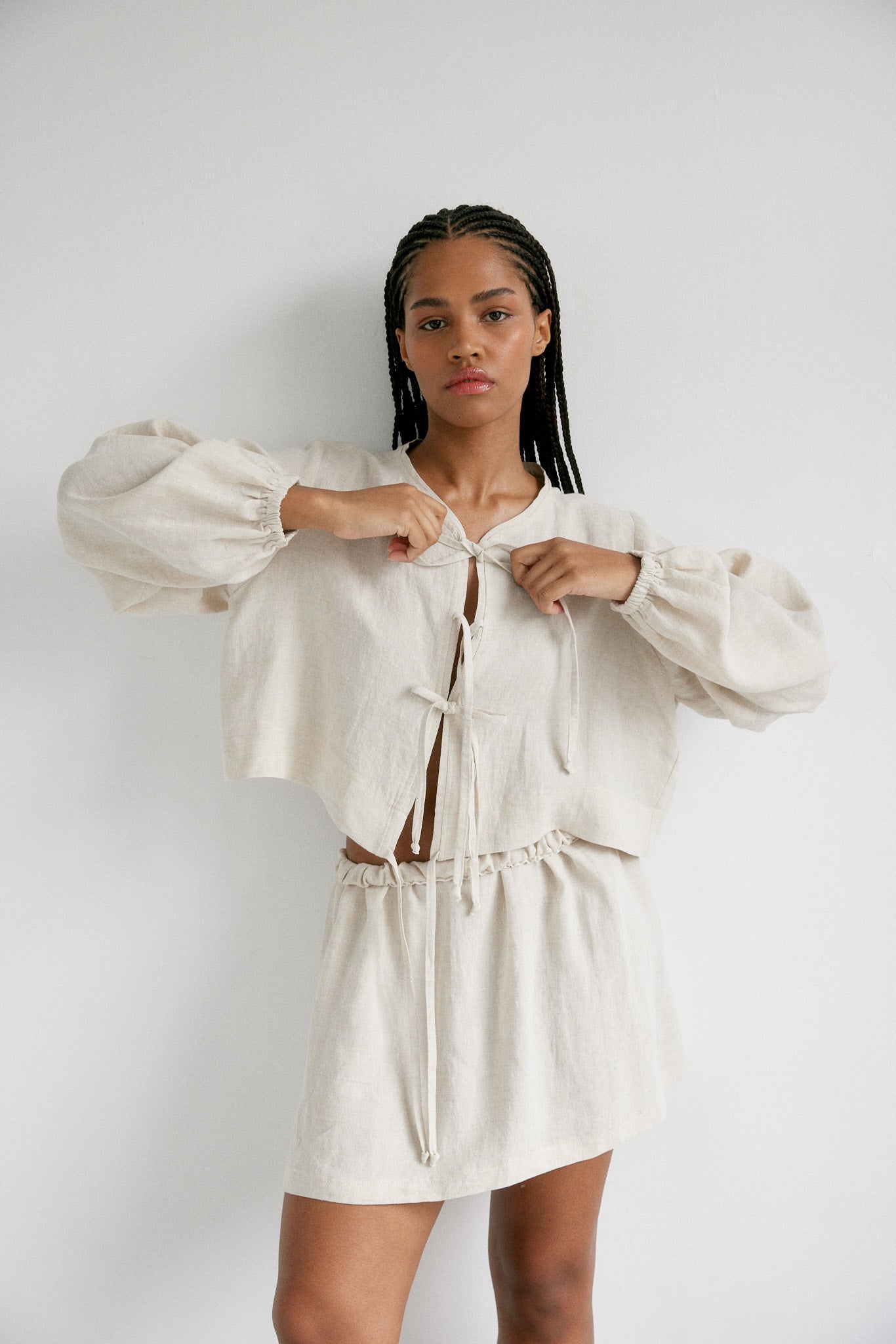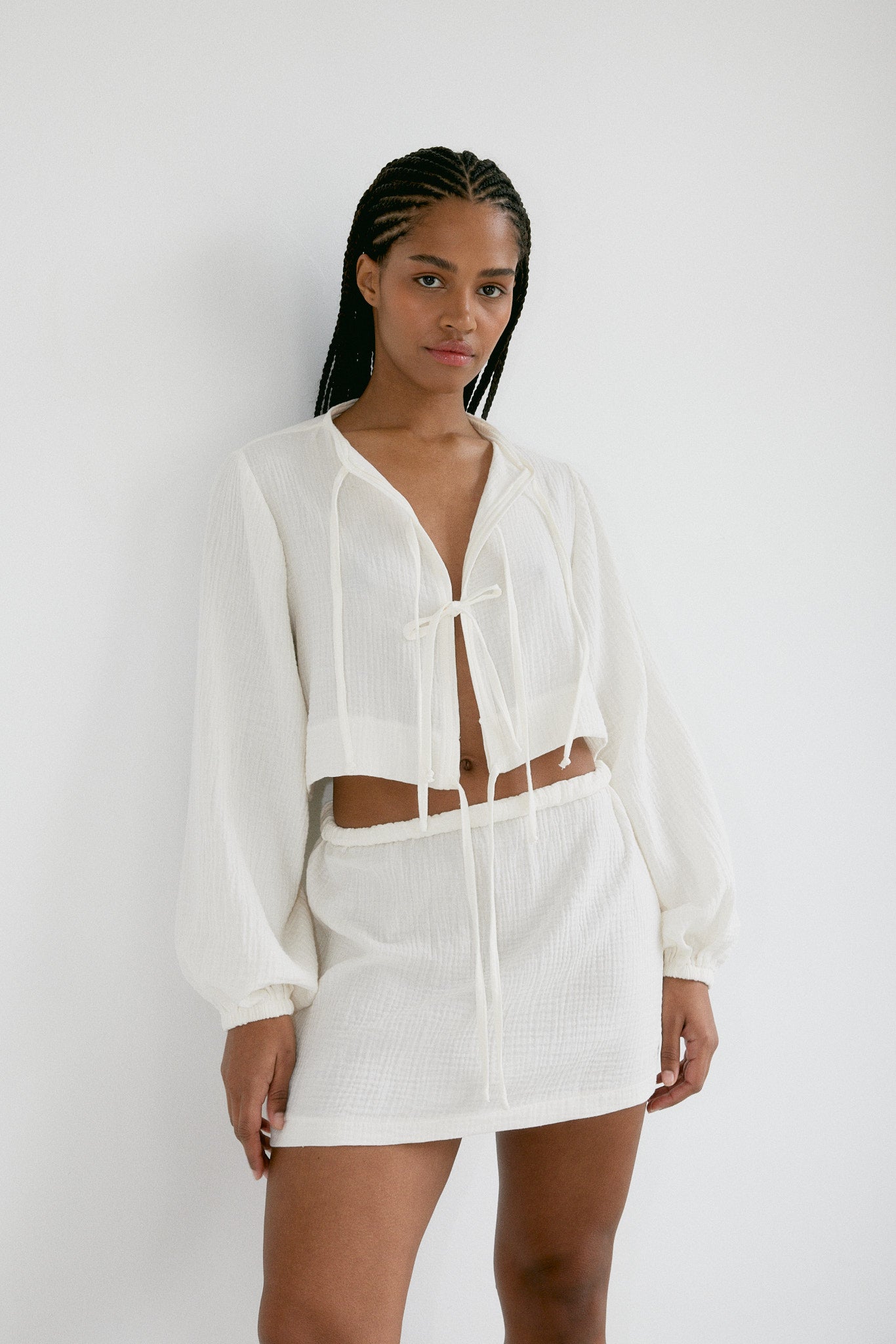 Our mini skirt goes with everything and is a nod to 90's simplicity with an elasticated waist. Roll the waist band for a shorter length.