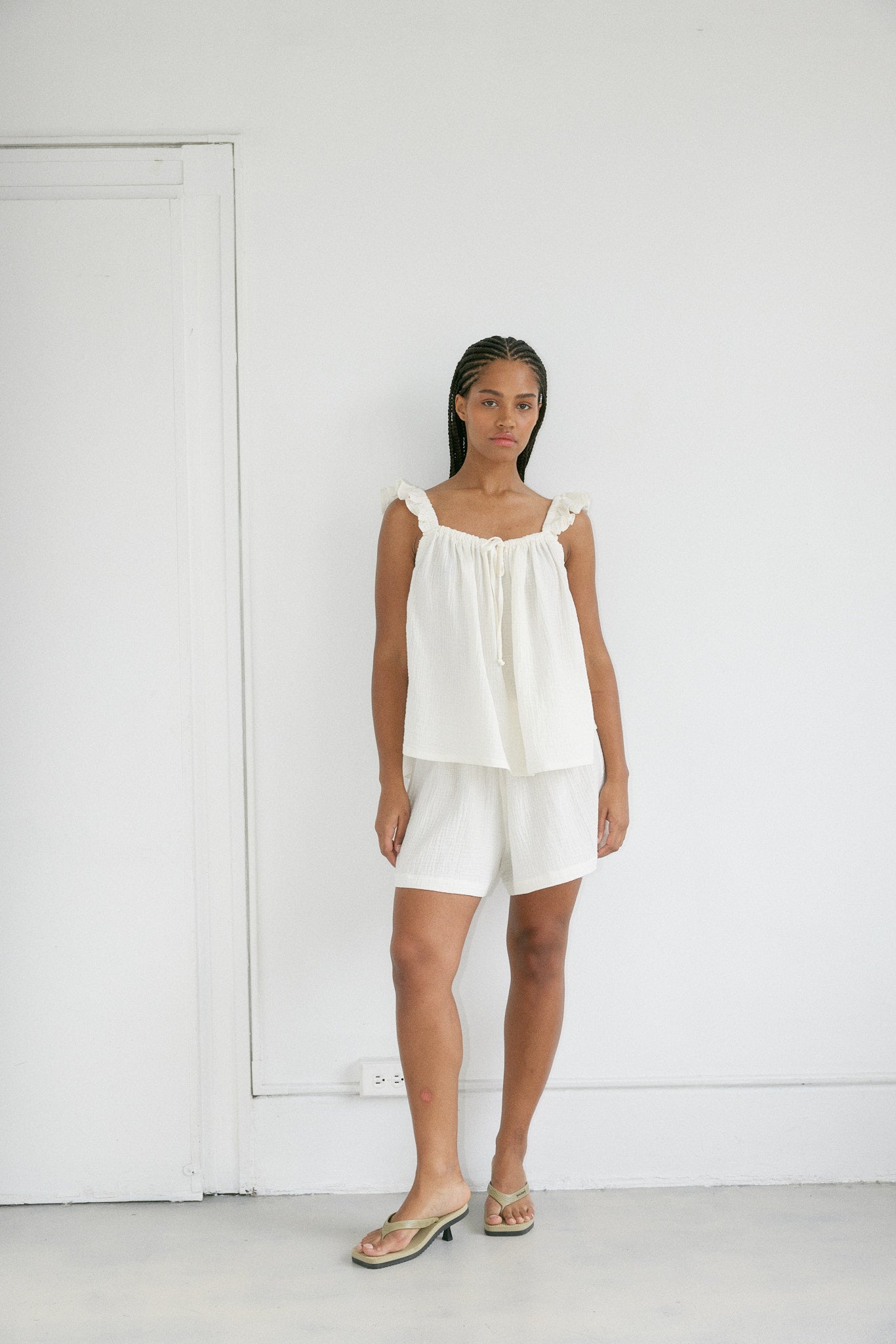 Our short goes with everything and is a nod to 90's simplicity with an elasticated waist. Roll the waist band for a shorter length.