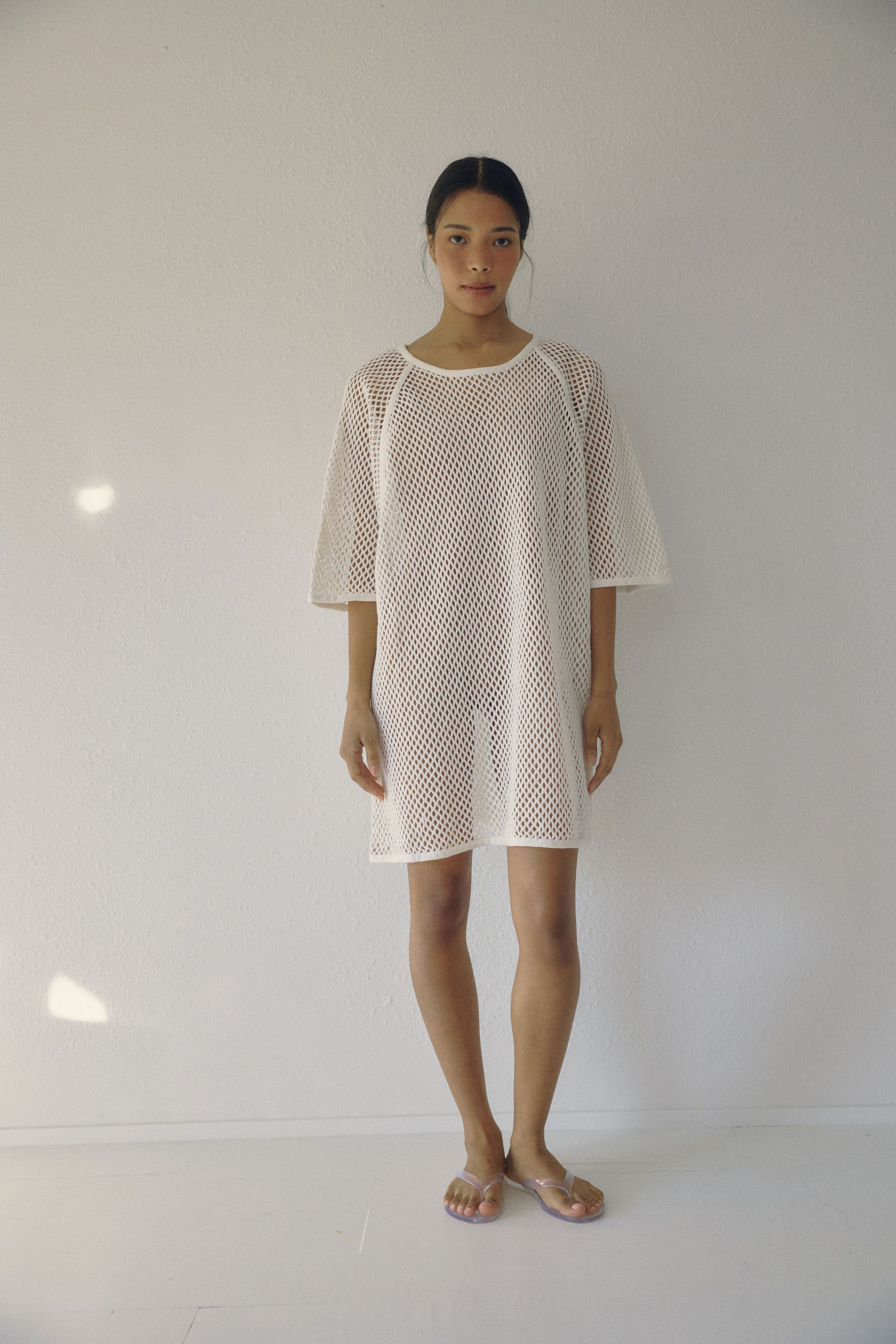 Inspired by a vintage net tee, this is ideal as a coverup for beach days or layered over your favourite denim.